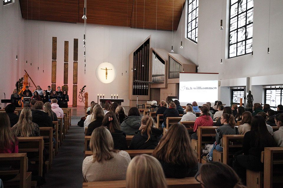 Am 28. November erinnerte das Berufskolleg Bergkloster Bestwig an den Geburtstag seiner Gründerin Julie Postel. Aus diesem Anlass versammelten sich Schülerinnen und Schüler sowie Lehrkräftte zu einem kurzen Impuls in der Klosterkirche.