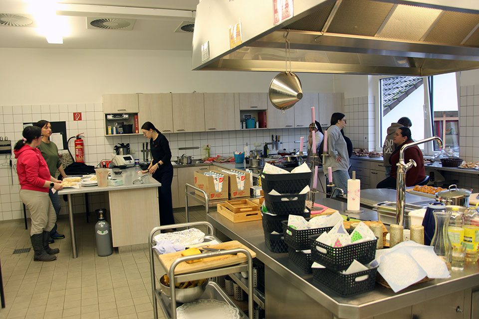 Im Anschluss an den Impuls in der Klosterkirche bereitete die Oberstufe der zweijährigen Berufsfachschule (B3O) ein besonderes Highlight vor: ein Weltfrühstück, das die Schülerinnen und Schüler mit viel Engagement und Kreativität gestalteten. Grundlage dafür waren die Länder, in denen die Schwestern der heiligen Maria Magdalena Postel tätig sind – und deren kulturelle Vielfalt sich in den ausgewählten Speisen widerspiegelte.