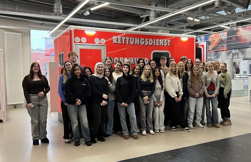 Die Unterstufenklassen der Zweijährigen Berufsfachschule und der Fachoberschule (Fachrichtung Gesundheit/Soziales) machten sich gemeinsam mit zwei Lehrkräften auf den Weg zur DASA – Arbeitswelt Ausstellung in Dortmund. Für die insgesamt 57 Schülerinnen und Schüler war der Besuch eine tolle Gelegenheit, Arbeitswelten von früher, heute und sogar morgen hautnah und interaktiv zu entdecken. In der DASA steht der Mensch mit all seinen Bedürfnissen im Mittelpunkt und zeigt anschaulich, wie Arbeit menschengerecht gestaltet werden kann.