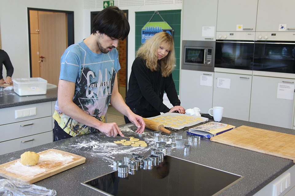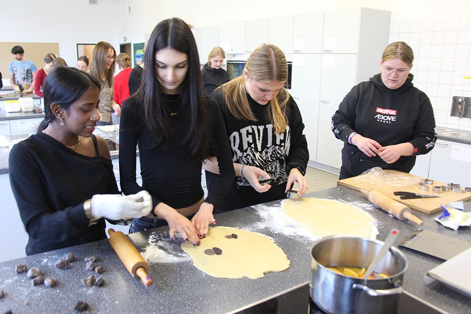 Alle Klausuren vor Weihnachten geschrieben – da kann man sich ja auch einmal anderen Dingen widmen: Die Schülerinnen und Schüler der Zweijährigen Berufsfachschule (Fachbereich Gestaltung) haben sich am heuigen Montag mit Begeisterung dem Thema Weihnachtsplätzchen gewidmet.