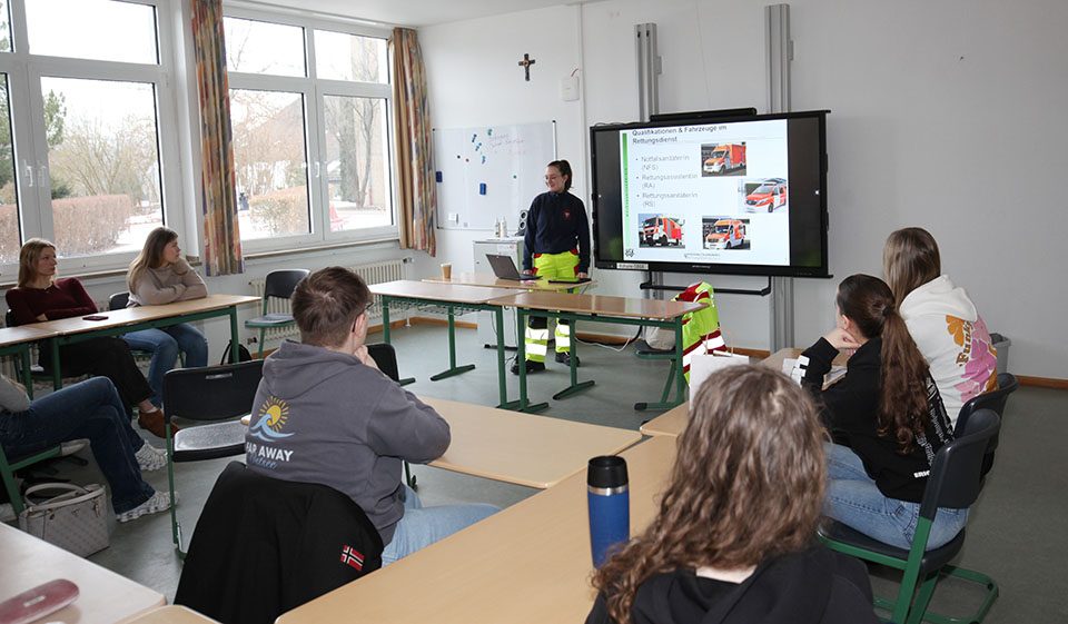 Auszubildende aus den Bereichen der Krankenpflege, eine angehende Rettungsassitentin und eine Optikerin stellten praxisnah ihre Berufe vor und zeigten, welche Fähigkeiten, Techniken und Verantwortung jeder Beruf mit sich bringt.